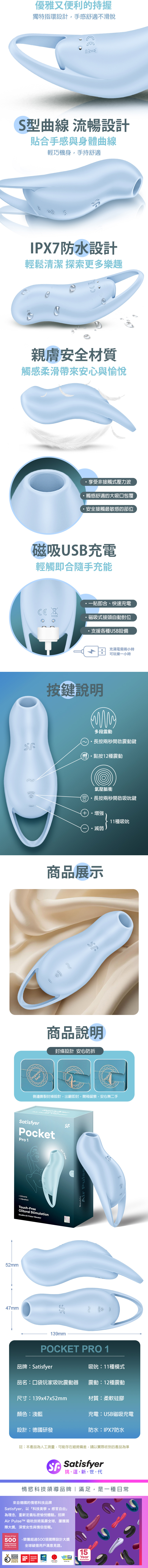 品名:Satisfyer|Pocket Pro 1|口袋玩家 陰蒂吸吮震動器 藍